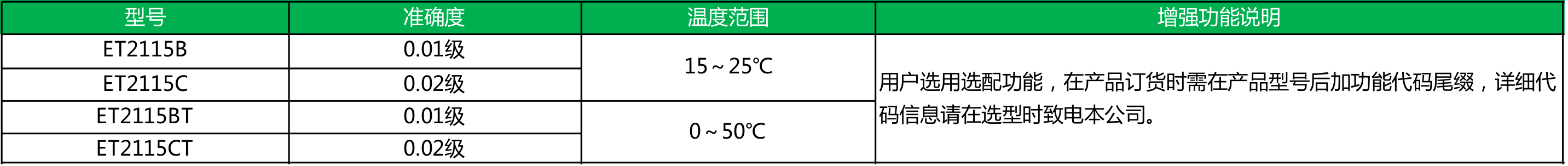 ● 精度为0.01%、0.02%两种;