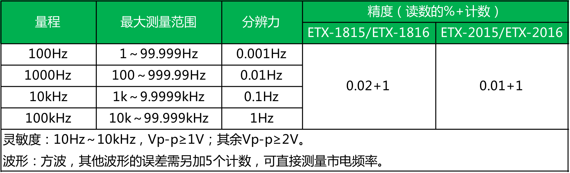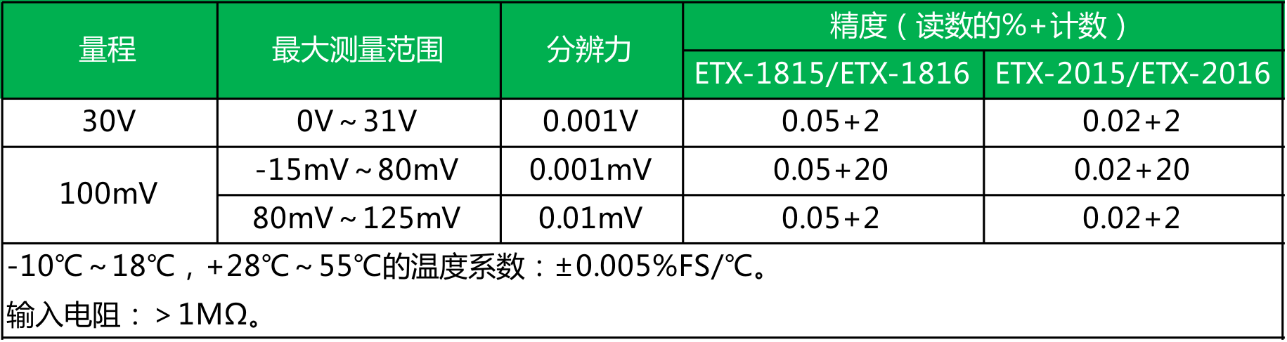 ● ETX-2015/2016型 精度为0.02%;ETX-1815/1816型 精度为0.05%;