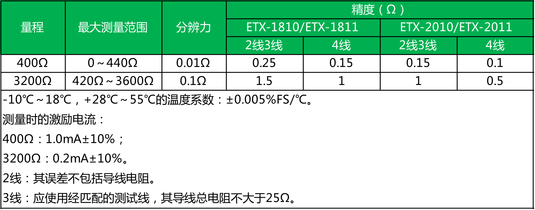 l 独有的自动识别三线、四线接线方式;精度为0.02%(ETX-2010或2011),0.05%(ETX-1810或1811);