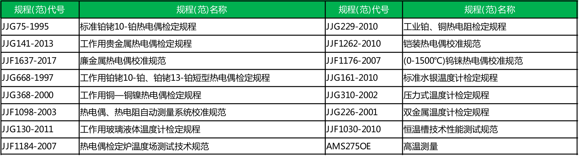 执行的检定规程、规范: