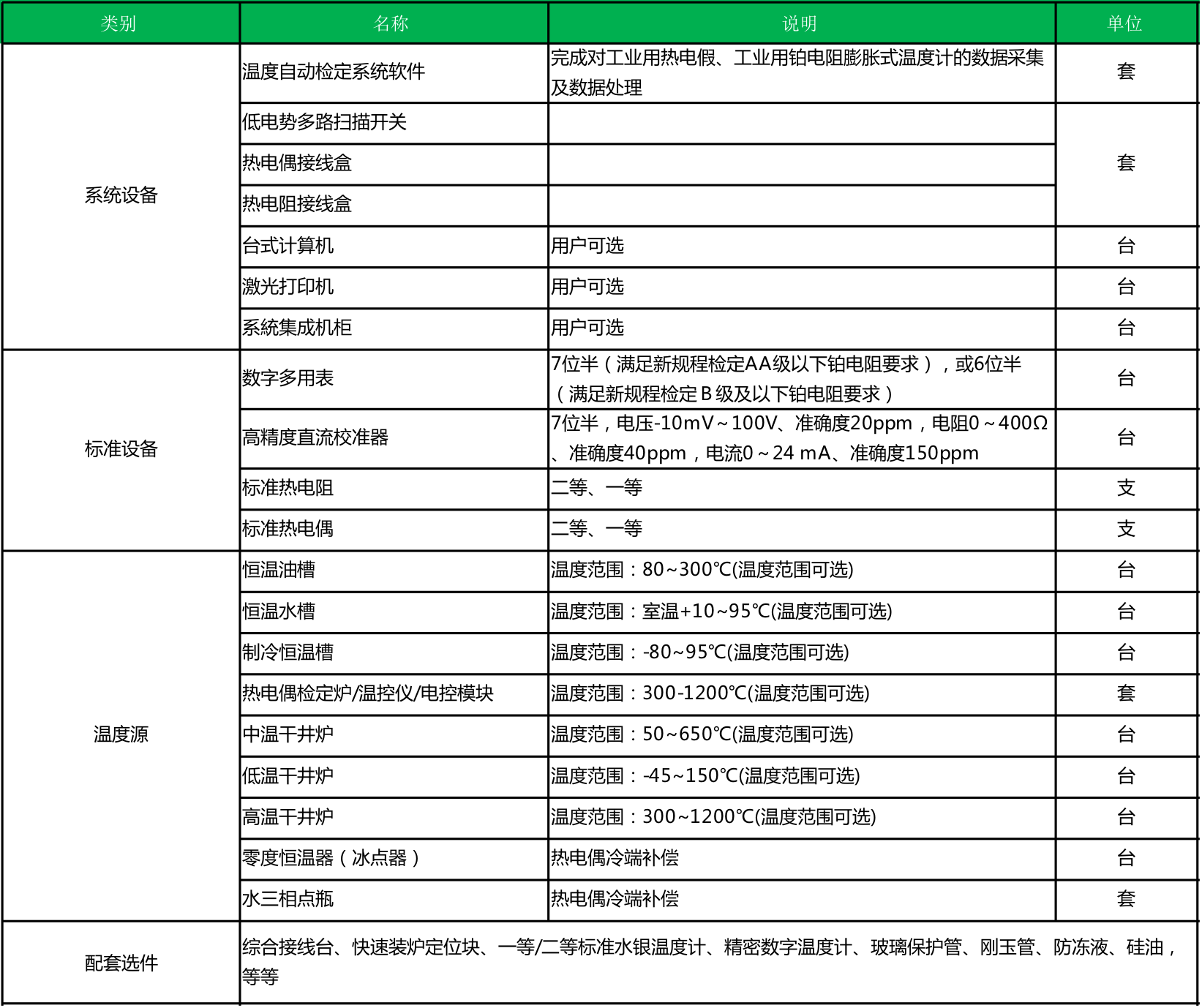 检定系统设备一览表: